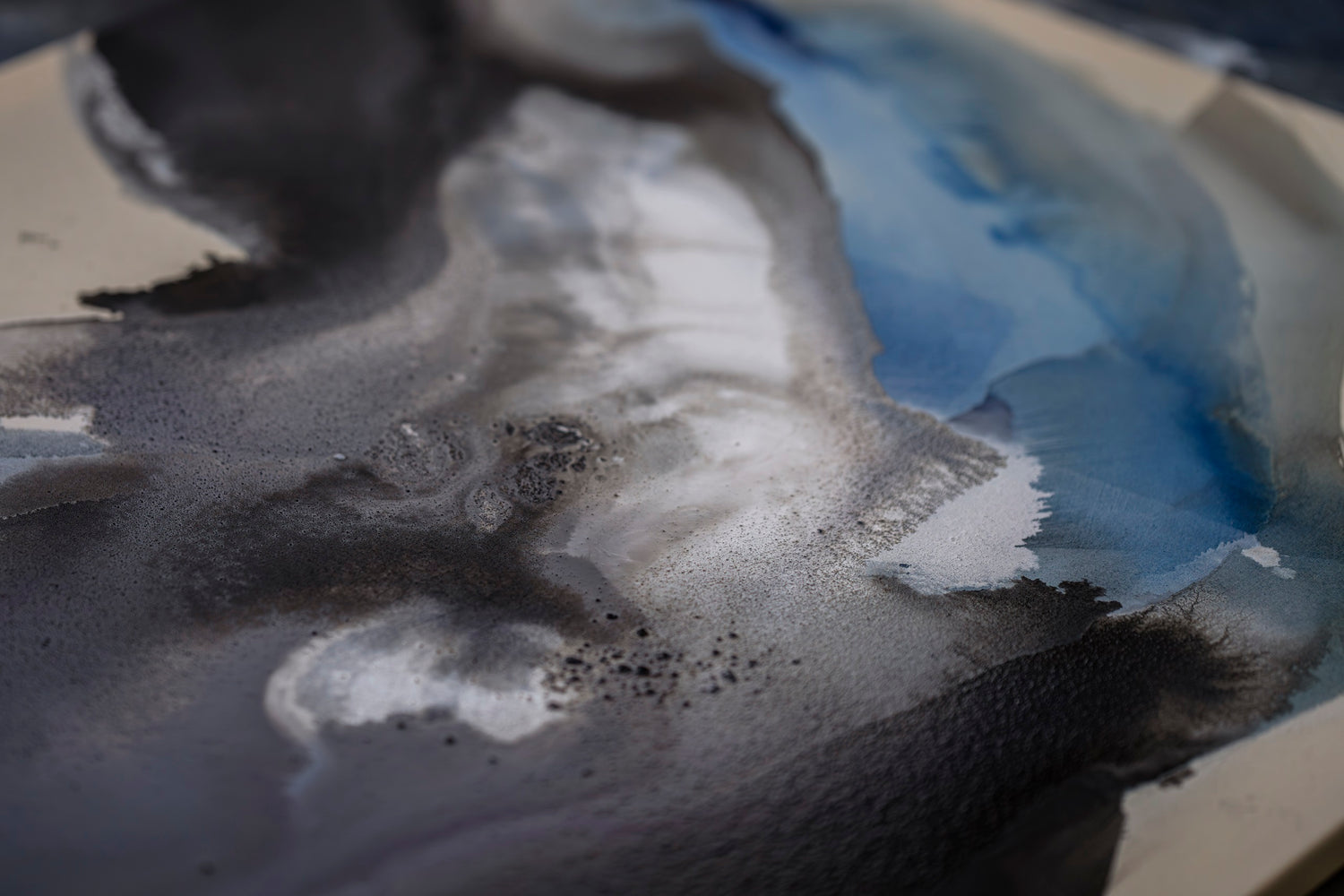 Using ink and fluid acrylics on raw canvas, I embrace their versatility—unpredictable yet capable of both delicate and powerful expression.