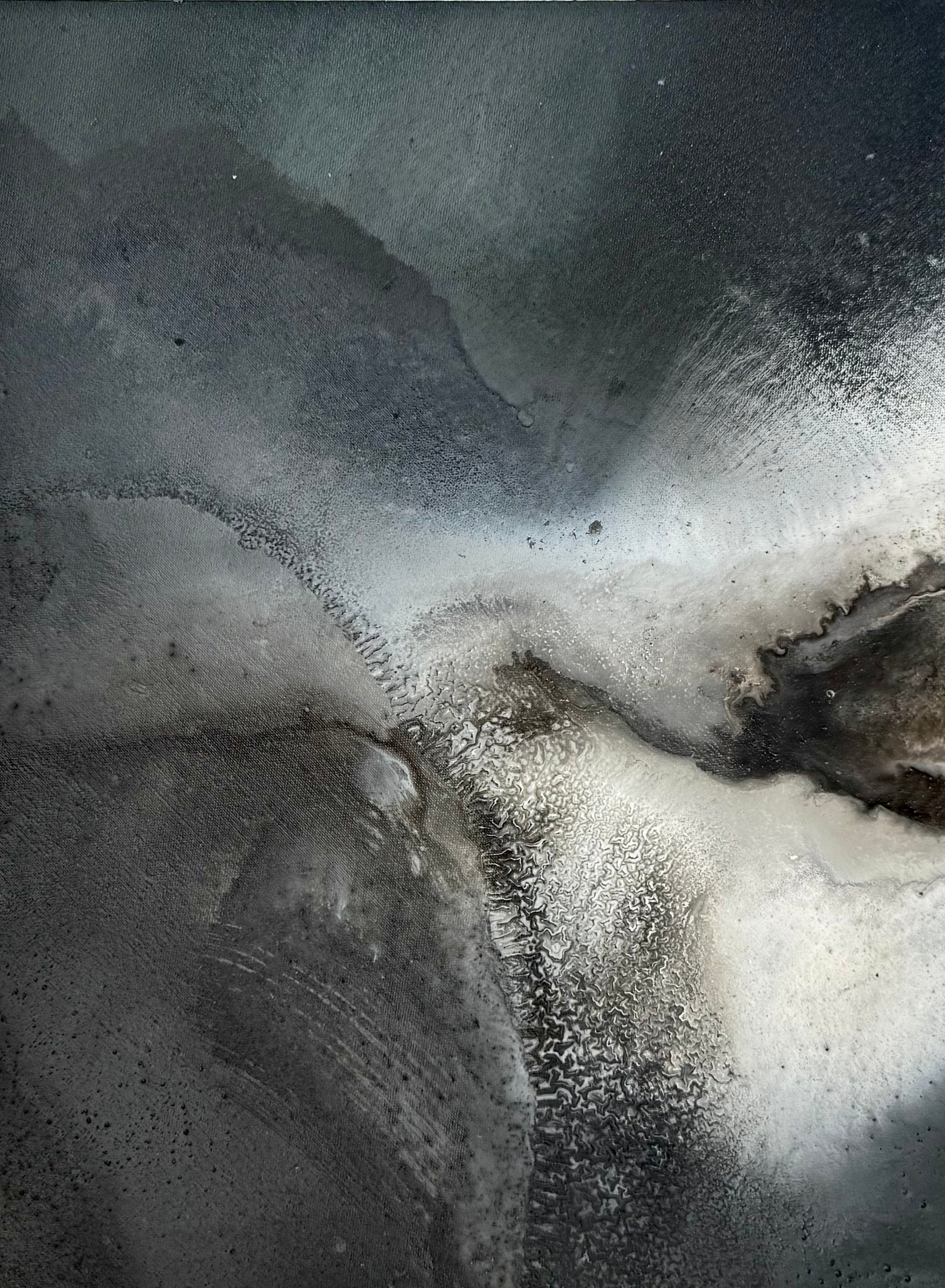 This painting explores the point where hidden forces push through the surface, capturing a sense of movement and change. It reflects on the moment when what is unseen becomes visible, and boundaries begin to give way.