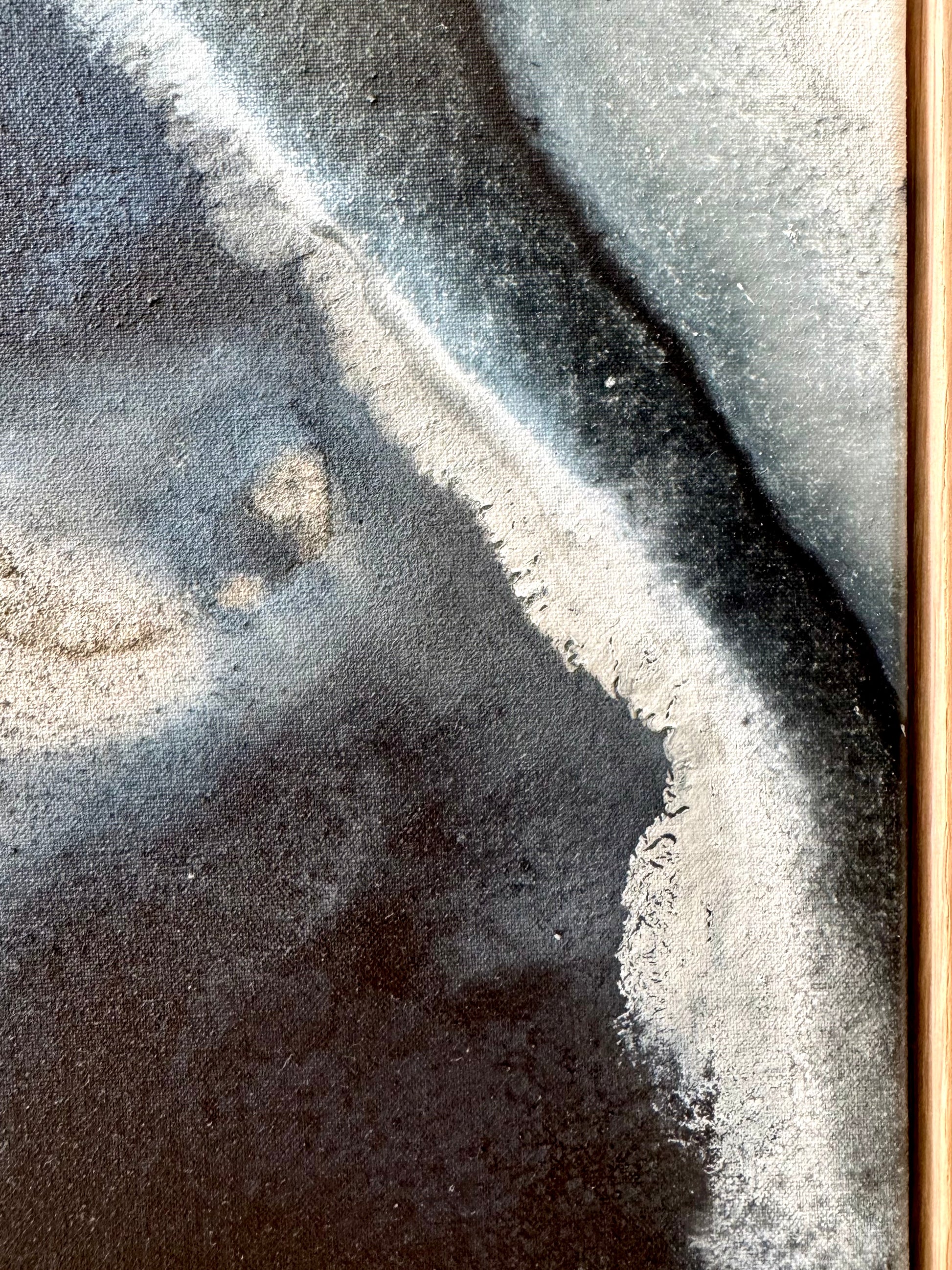 "Freedive"draws inspiration from the quiet depth of the ocean. The soft layers of blue and grey mirror the feeling of descending into still water, where sound and movement begin to fade. The work captures the calm focus and release that come with being fully immersed, both in the sea and within oneself.